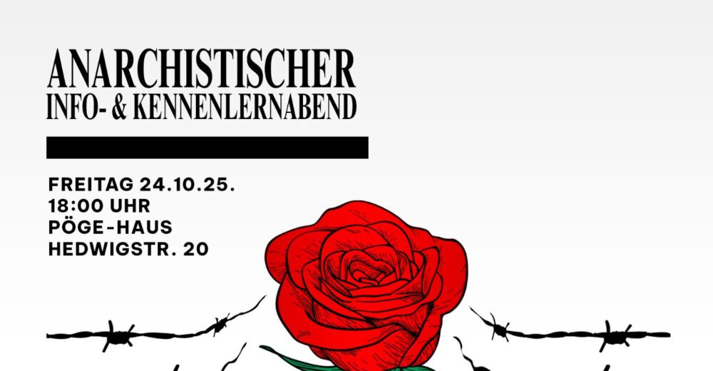 Dann kommt zum anarchistischen Info- & Kennenlernabend! ✨