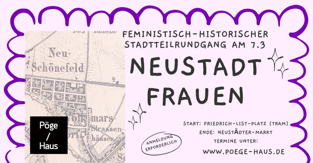 Wir spazieren durch das Viertel rund um den vorderen Teil der Eisenbahnstraße und erinnern dabei am Vortag des 8. März an die Kämpfe und den Mut, aber auch das Schicksal und das Leid von Frauen, die im Stadtteil gelebt oder gewirkt haben. Wir reden über …